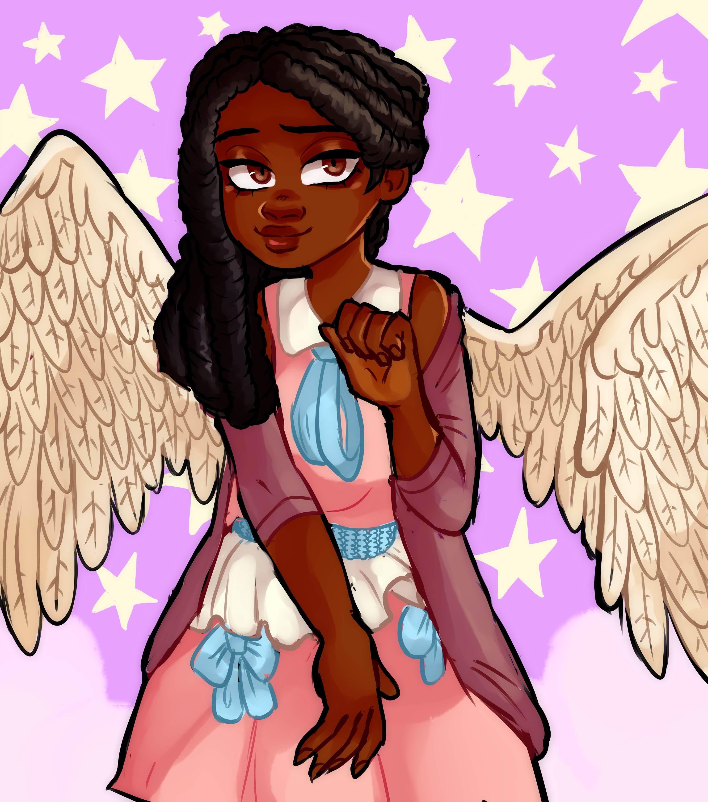 Agape is of average height with black faux locs that often reach her chest. She also has broen eyes and warm toned skin. Agape's clothing preferences include dresses and long skirts because she appreciates the breeziness these item of clothing give her.